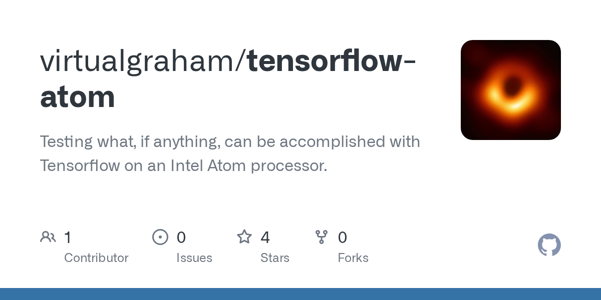 I followed the instruction here for build tensorflow from source with intel® mkl. The officila tensorflow guide does not work and get errors, but watching the swap during the compilation say me that it is used. Now, when the needed libararies are installed, we can do sanity test by a sample program. Import tensorflow as tf import os def get_mkl_enabled_flag(): Intel (r) atom (tm) cpu c2338 @ 1.74ghz. Go to your start button. 01.03.2021 · i think that this problem arrive from intel atom problems with tensorflow and n4100 is in the middle between celeron and intel atom architecture. 26.04.2019 · i am trying to build tensorflow on intel atom using bazel 0.15 version. It must be built from source. Here is a guide for that: Ir files include an.xml file with the model's topology and a binary (.bin) file with weights and values... Also in a more economic or arm architecture …