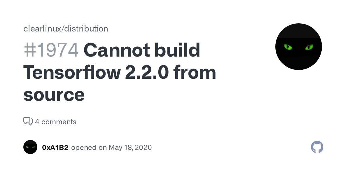 It must be built from source. This page explains how to build from scratch tensorflow 1.14.0 without avx. Go to your start button. Now, when the needed libararies are installed, we can do sanity test by a sample program.. 01.03.2021 · i think that this problem arrive from intel atom problems with tensorflow and n4100 is in the middle between celeron and intel atom architecture.
